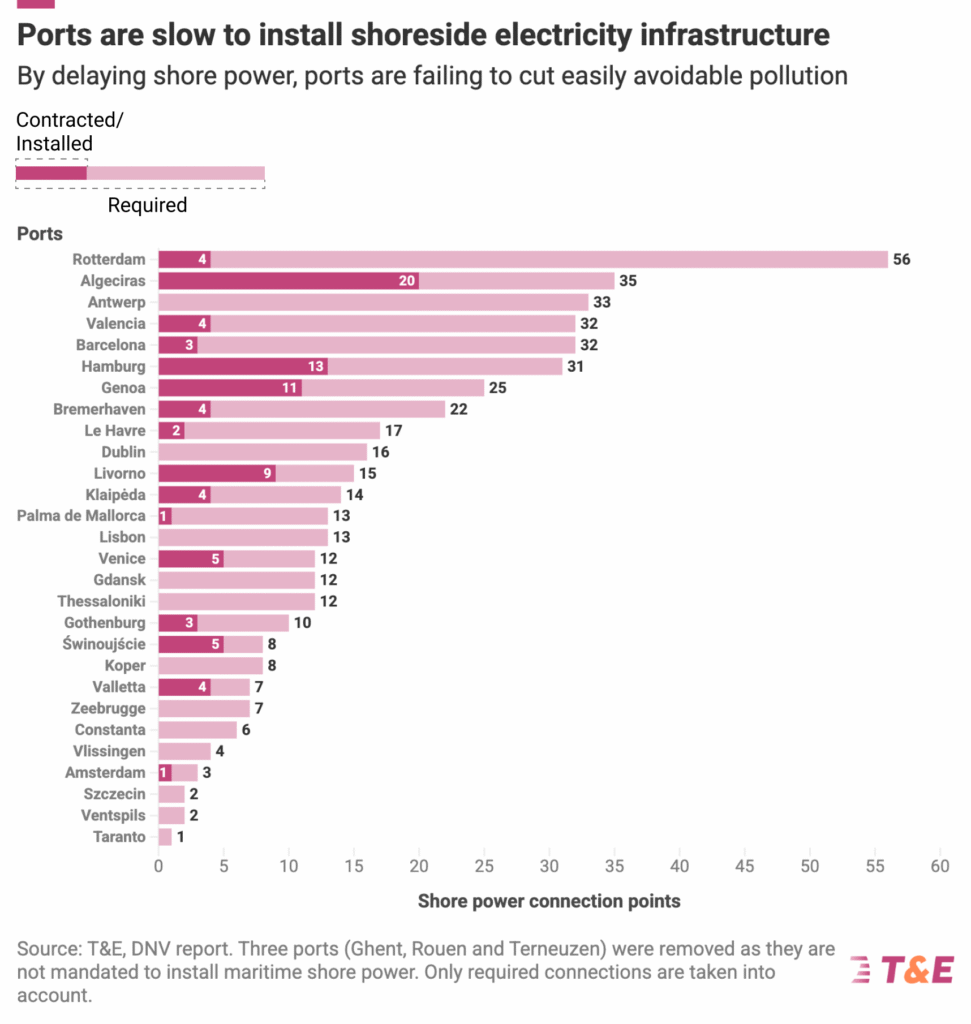 Most European ports are lagging in installing the shore-side electrical infrastructure needed for ships to switch from highly polluting marine fuel to cleaner electricity while docked, a new study showed…